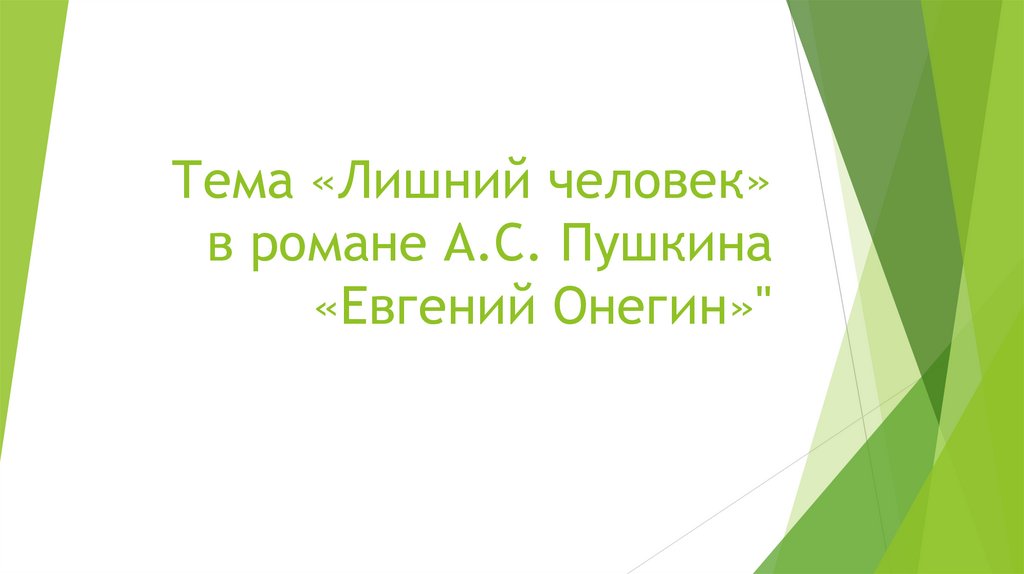 1. Тема «Лишний человек» в романе А.С. Пушкина «Евгений Онегин»"