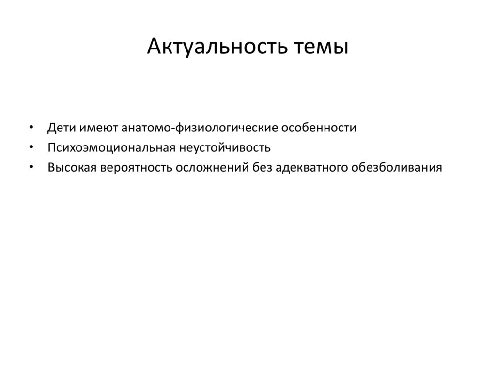 • Высокая вероятность осложнений без адекватного обезболивания