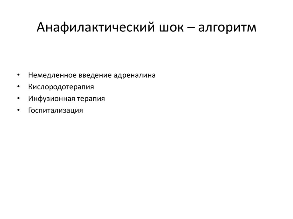 Анафилактический шок – алгоритмНемедленное введение адреналина