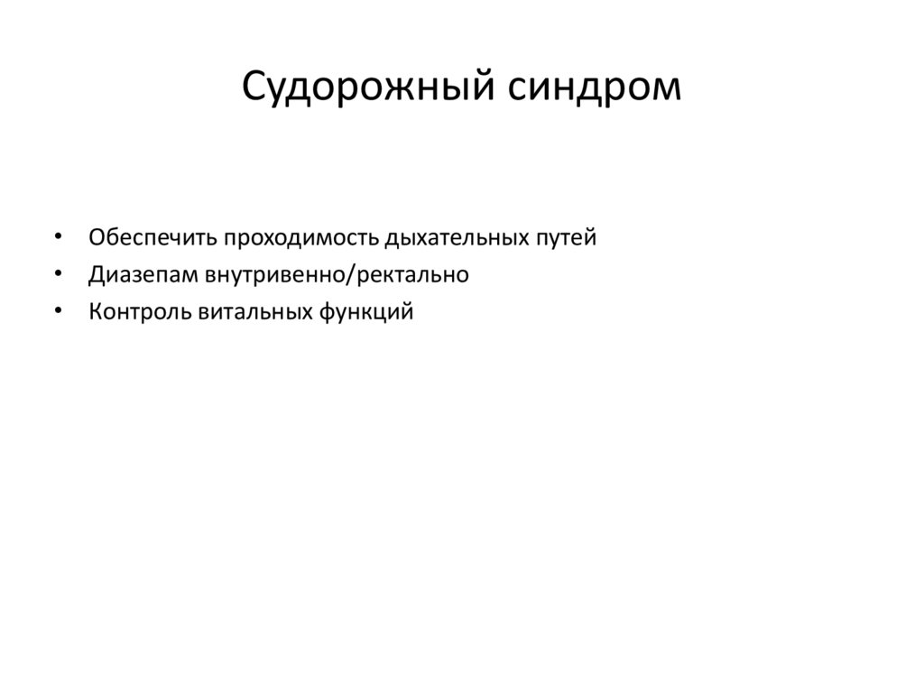 Судорожный синдром• Обеспечить проходимость дыхательных путей