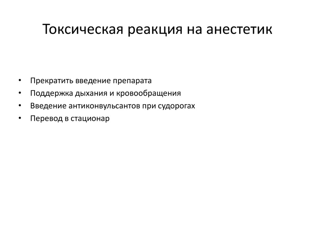 Токсическая реакция на анестетикПрекратить введение препарата