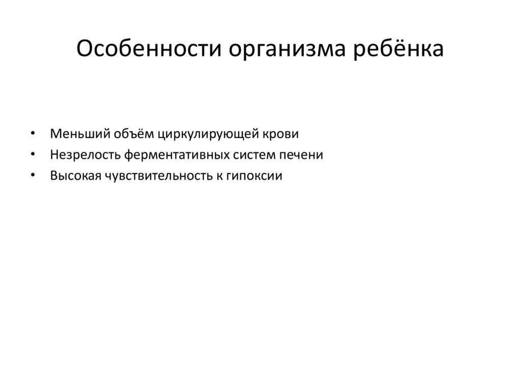 Особенности организма ребёнка• Меньший объём циркулирующей крови