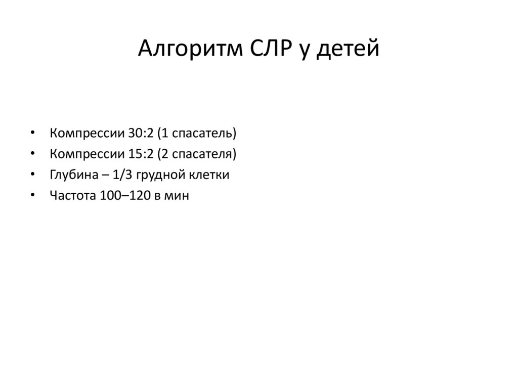 Алгоритм СЛР у детейКомпрессии 30:2 (1 спасатель)