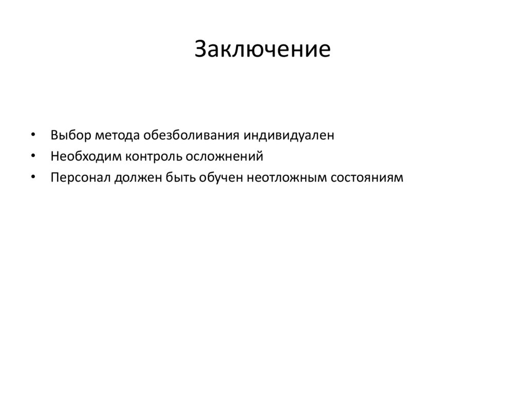 Заключение• Выбор метода обезболивания индивидуален