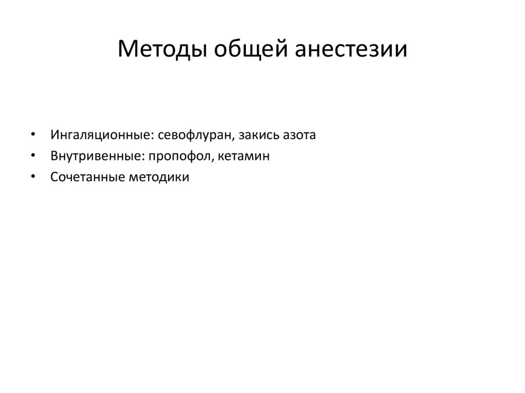 • Методы: ингаляционный, внутривенный