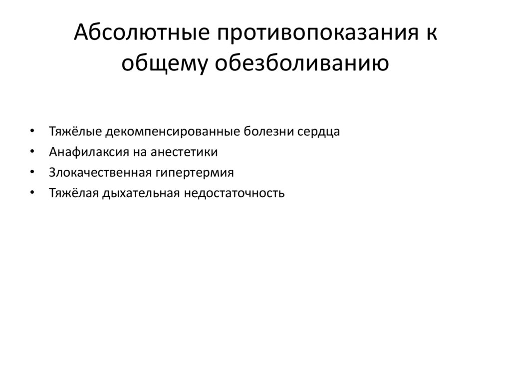 Абсолютные противопоказания кобщему обезболиванию