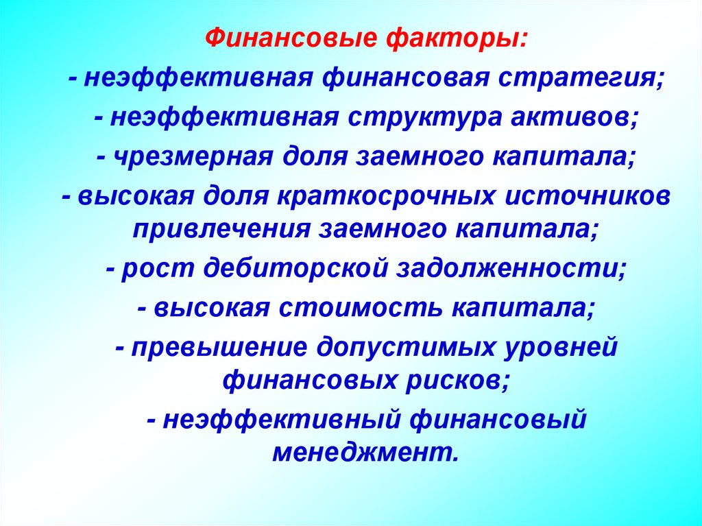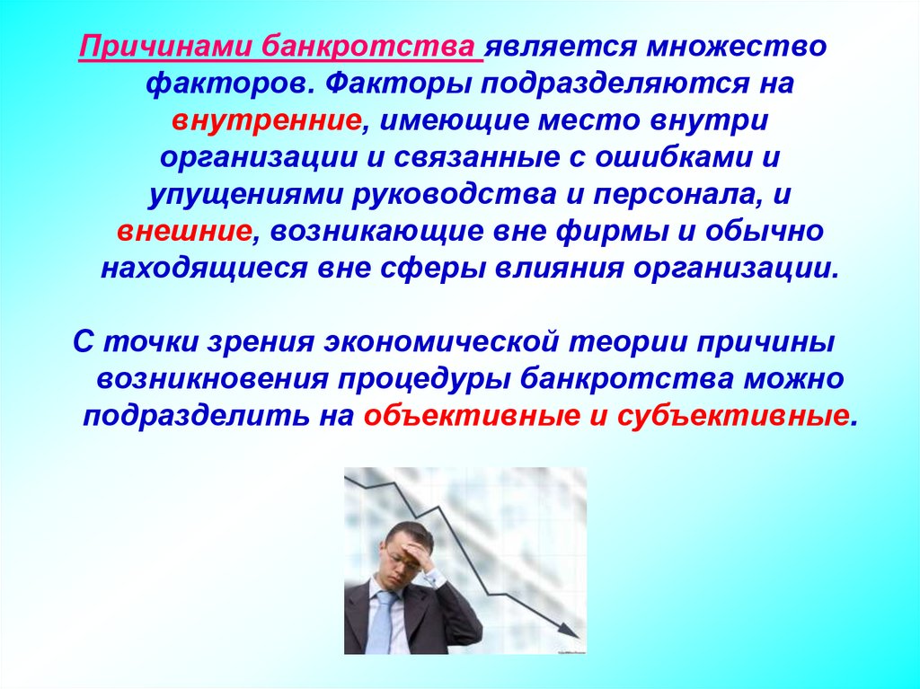 Причинами банкротства является множествофакторов. Факторы подразделяются на
