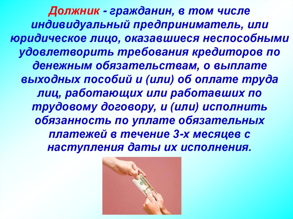 Должник - гражданин, в том числеиндивидуальный предприниматель, или