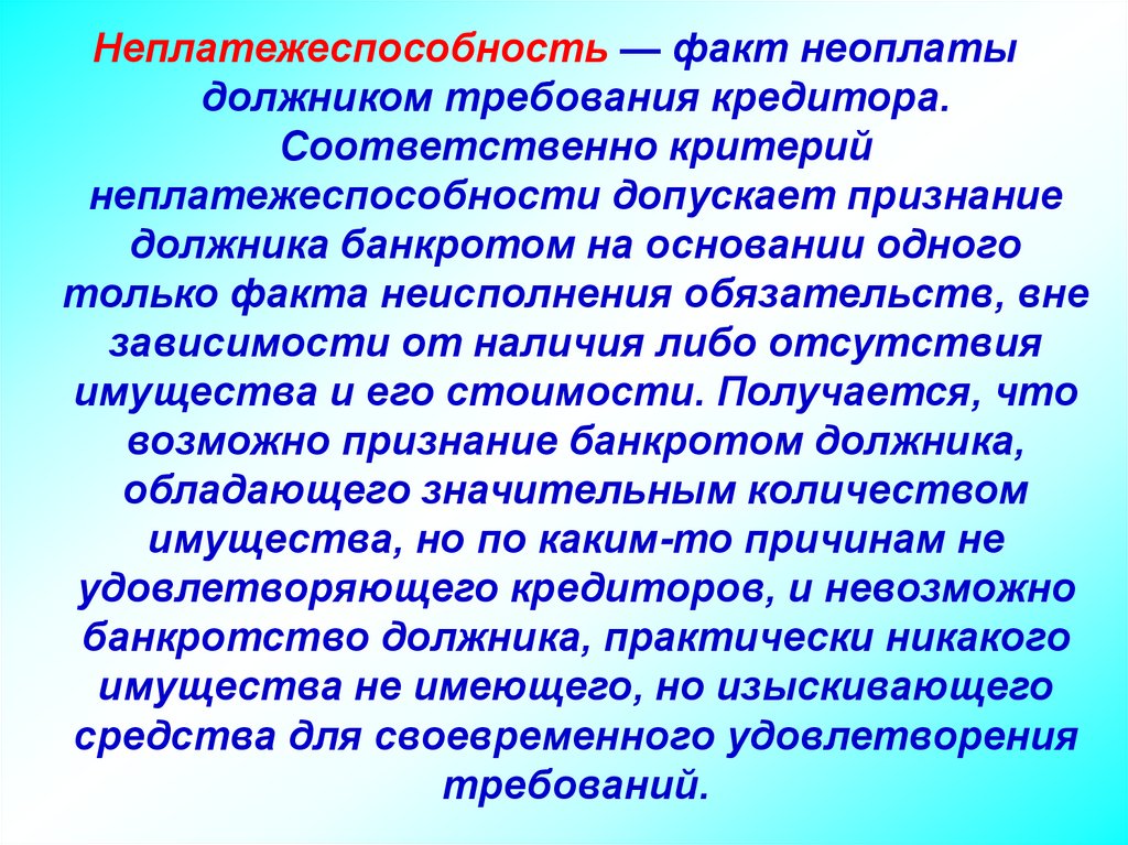 Неплатежеспособность — факт неоплатыдолжником требования кредитора.