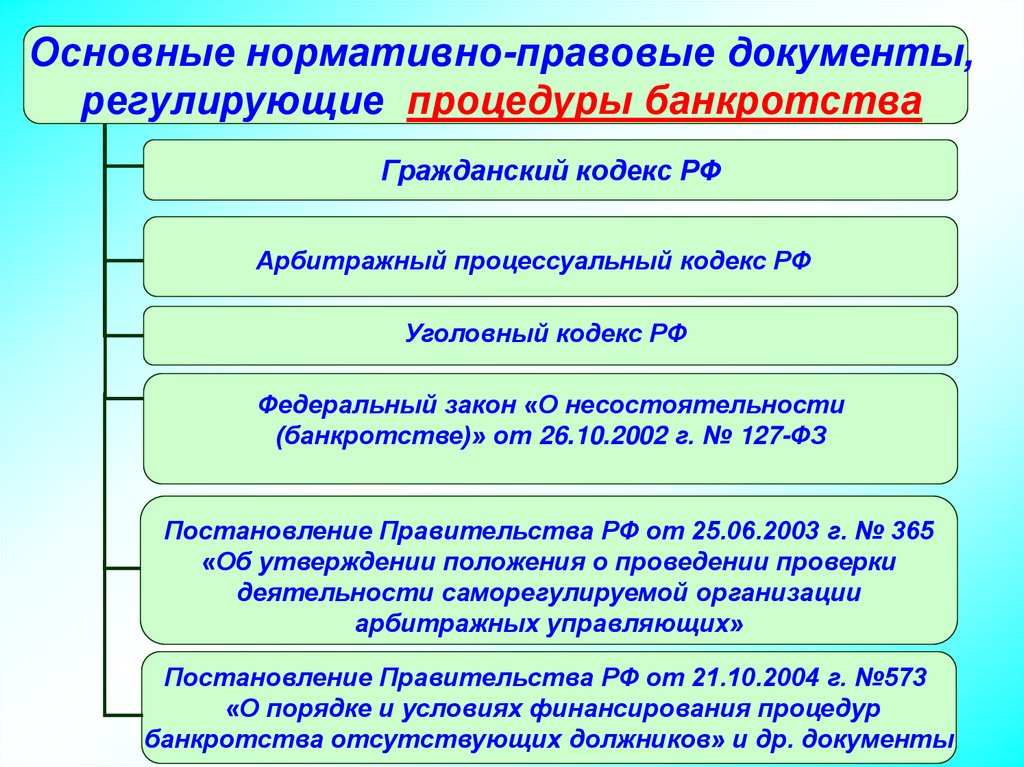 Основные нормативно-правовые документы,регулирующие процедуры банкротства