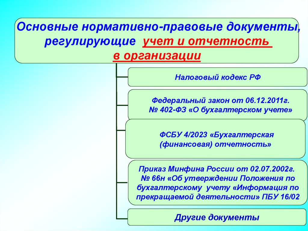 Основные нормативно-правовые документы,регулирующие учет и отчетность