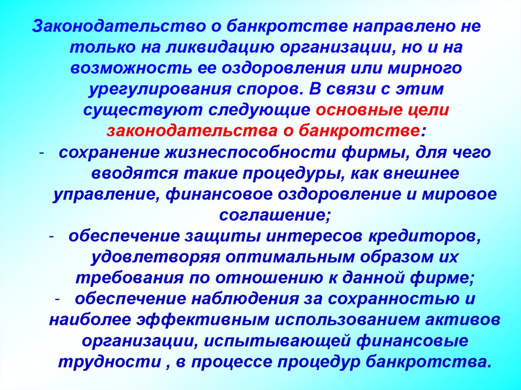 Законодательство о банкротстве направлено нетолько на ликвидацию организации, но и на