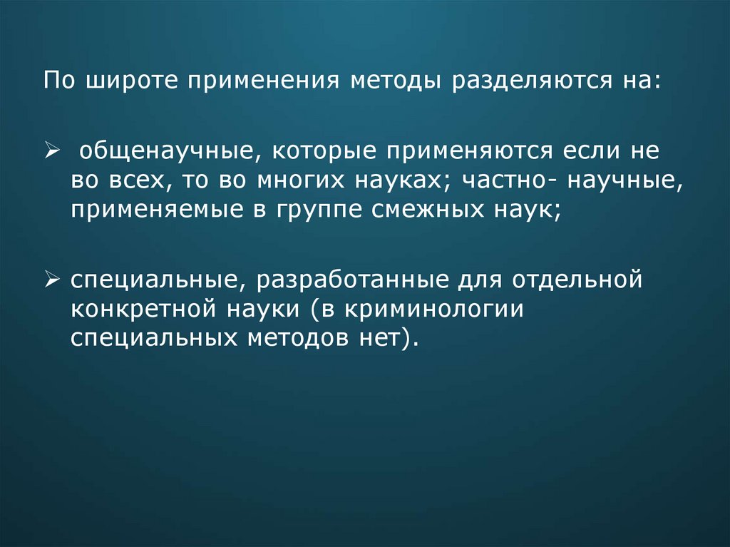 По широте применения методы разделяются на:общенаучные, которые применяются если не