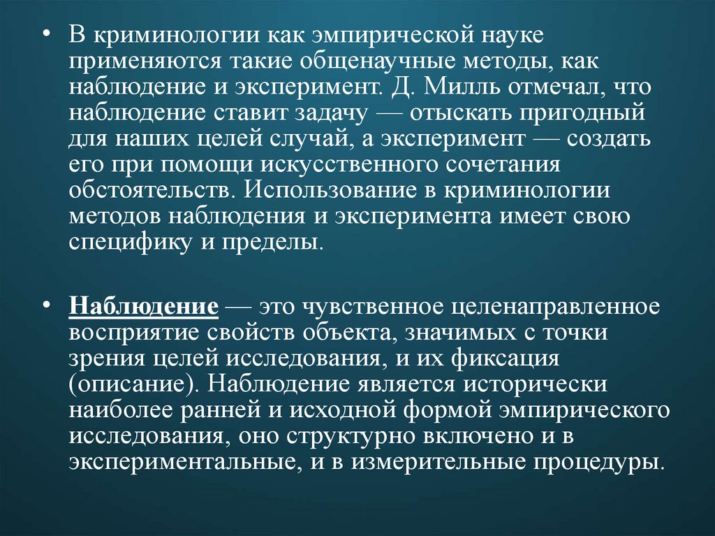 • В криминологии как эмпирической наукеприменяются такие общенаучные методы, как
