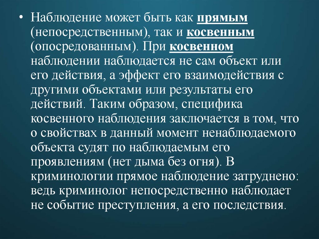 • Наблюдение может быть как прямым(непосредственным), так и косвенным