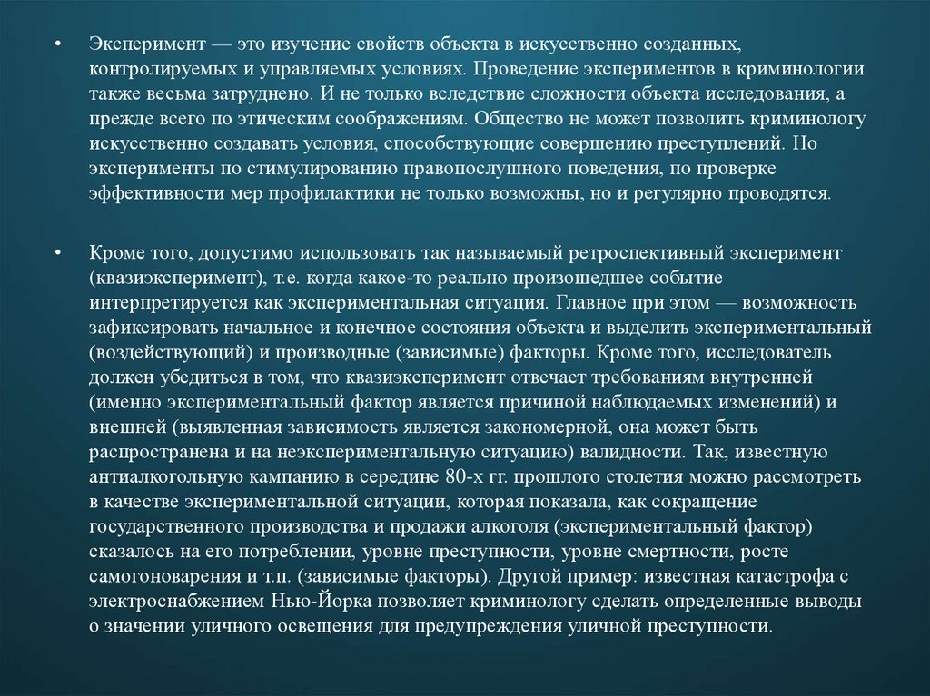 контролируемых и управляемых условиях. Проведение экспериментов в криминологии