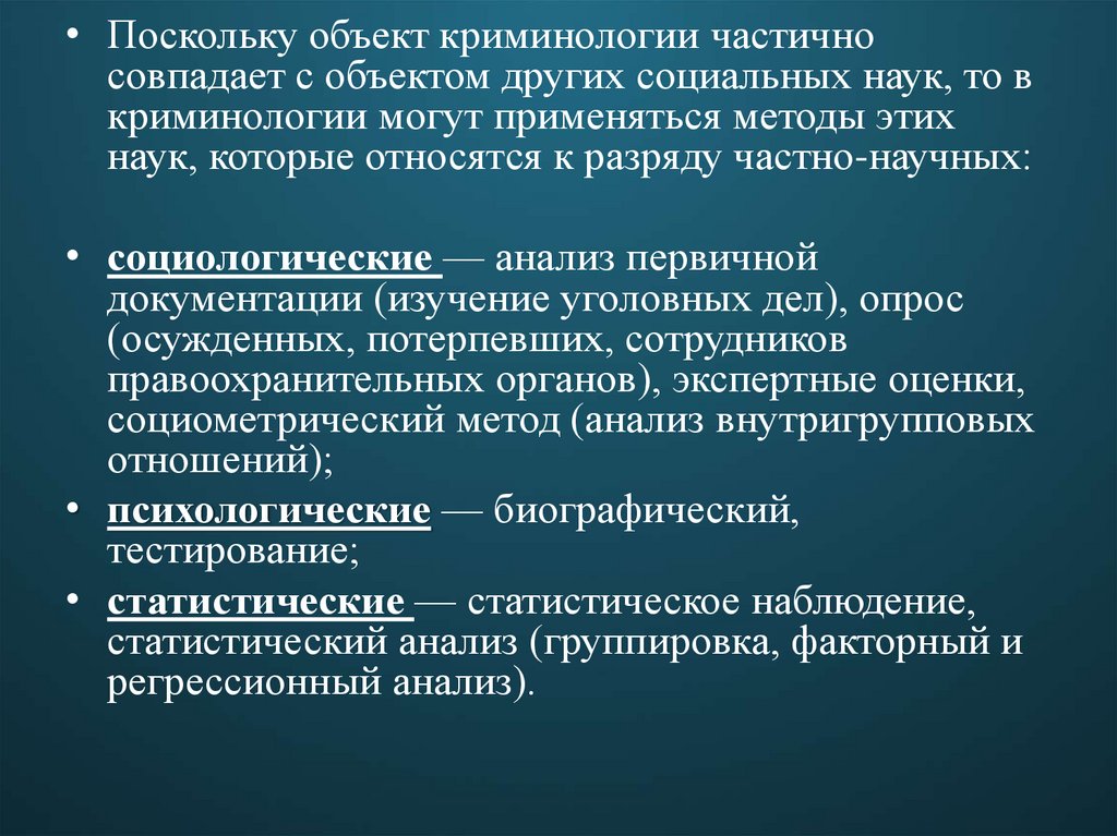 • Поскольку объект криминологии частичносовпадает с объектом других социальных наук, то в