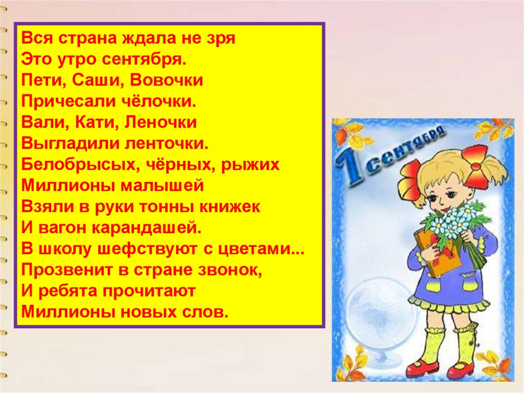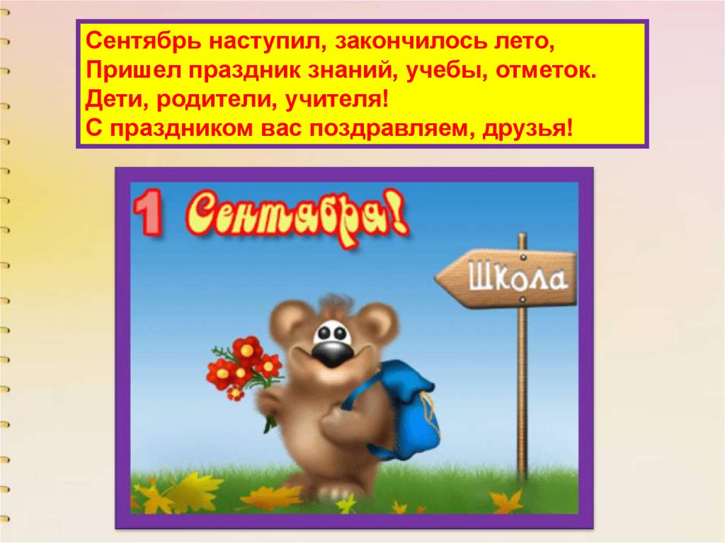Сентябрь наступил, закончилось лето,Пришел праздник знаний, учебы, отметок.