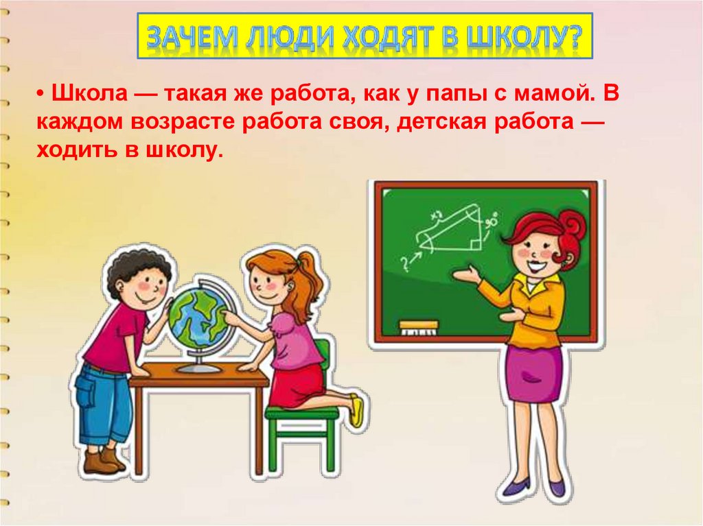 • Школа — такая же работа, как у папы с мамой. Вкаждом возрасте работа своя, детская работа —