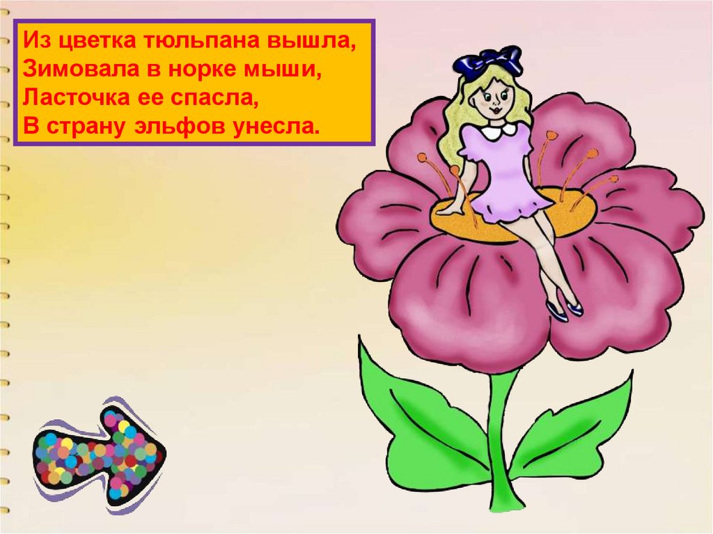 Из цветка тюльпана вышла,Зимовала в норке мыши,