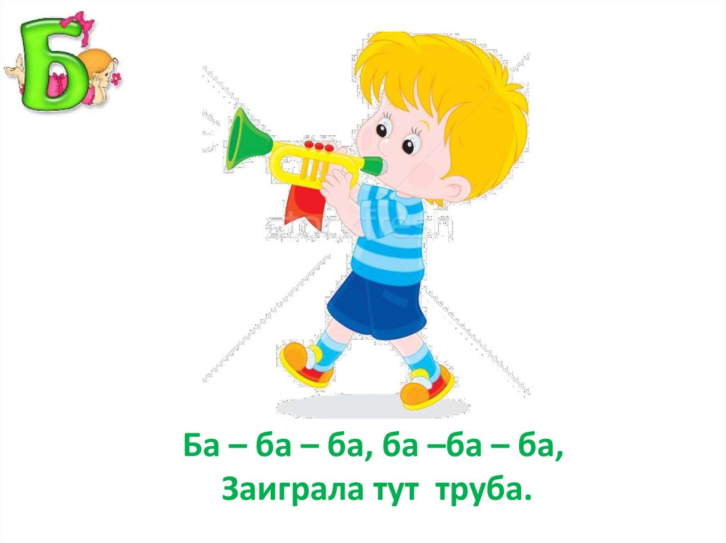 Ба – ба – ба, ба –ба – ба,Заиграла тут труба.