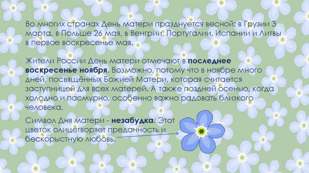Символ Дня матери - незабудка. Этот