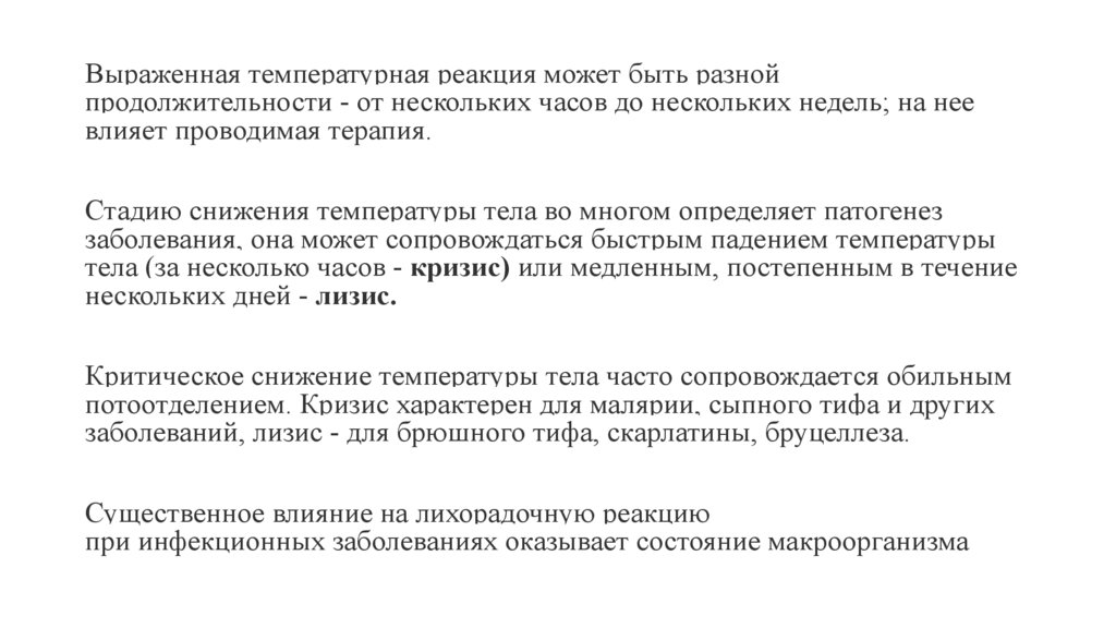 максимального развития и угасания симптомов. Фаза угасания при лихорадочных заболеваниях