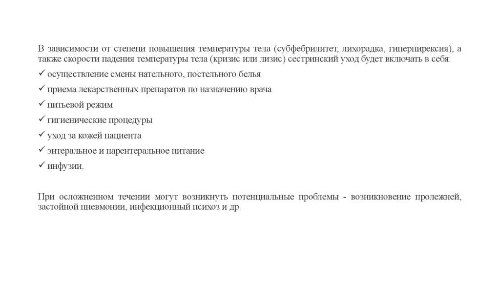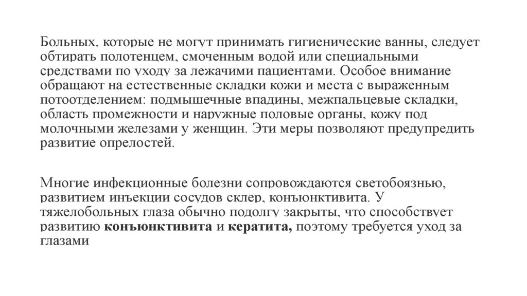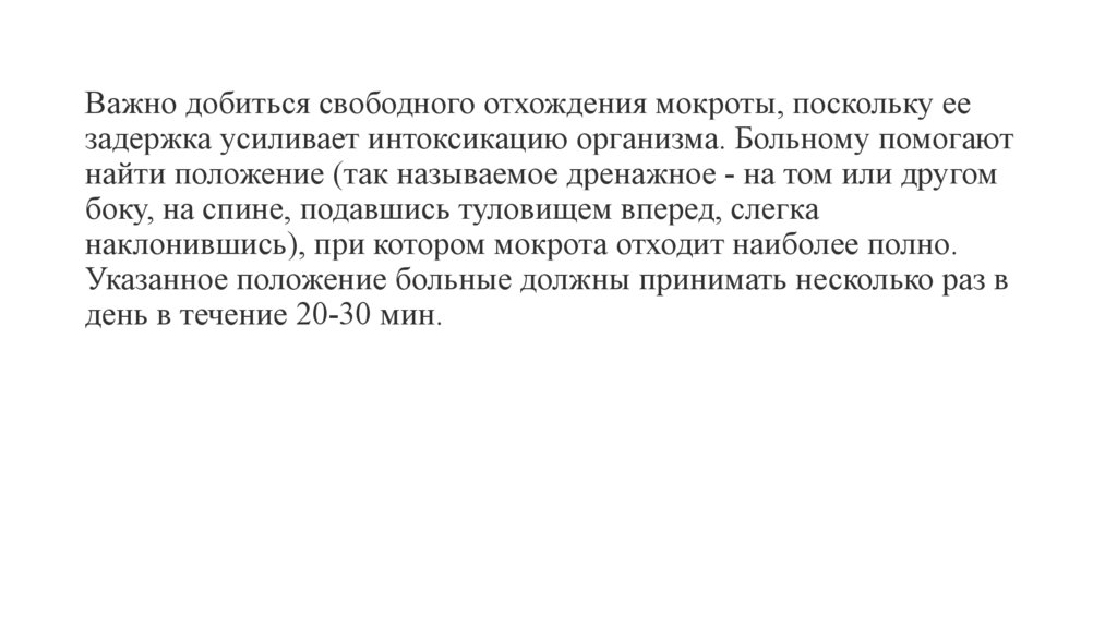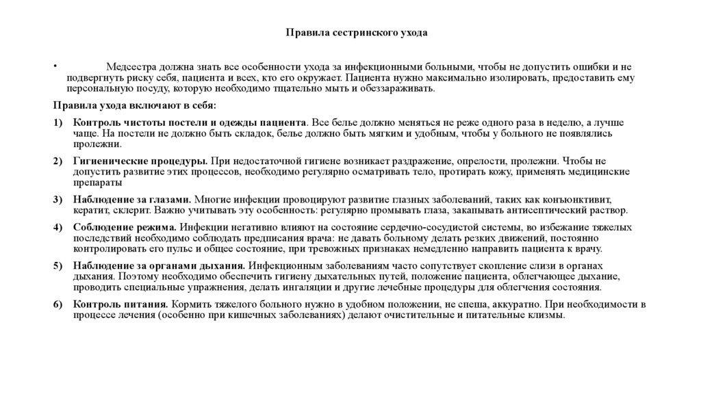 •Медицинские сестры должны следить за больным и не допускать его длительного пребывания в одном и том же