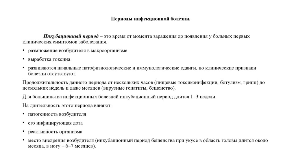 нескольких недель и даже месяцев (вирусные гепатиты, бешенство).