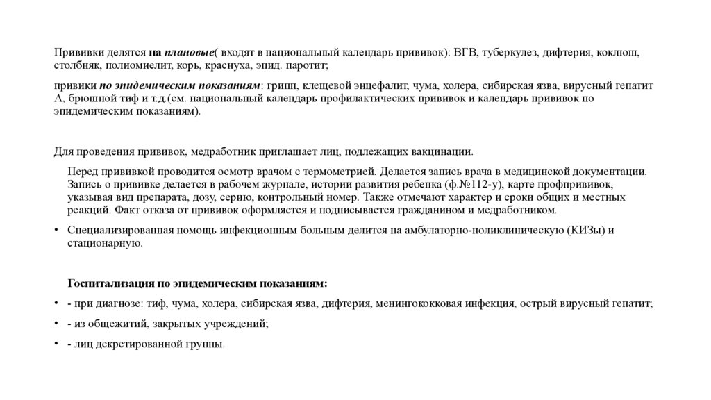 •Больничные режимы.•В зависимости от характера инфекционного заболевания, его стадии и периода больному предписываются различные