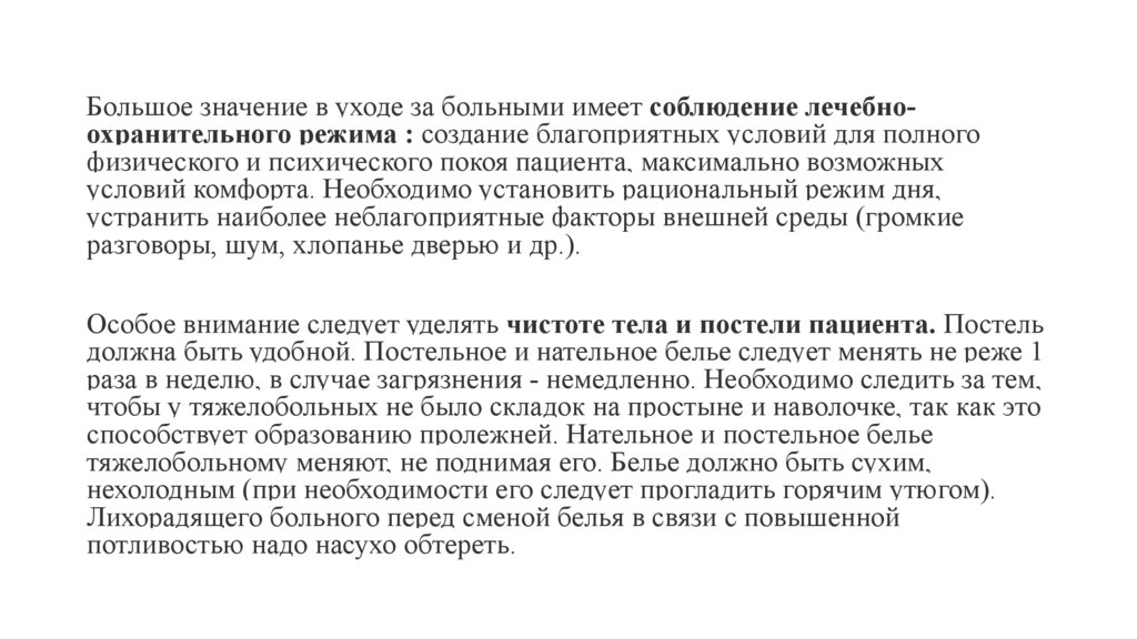 •Медицинский персонал должен строго следить за соблюдением больными режима, который им предписал врач.
