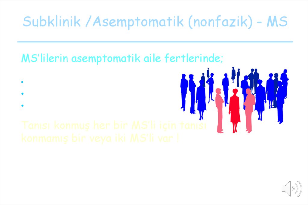 Subklinik /Asemptomatik (nonfazik) - MSMS’lilerin asemptomatik aile fertlerinde;