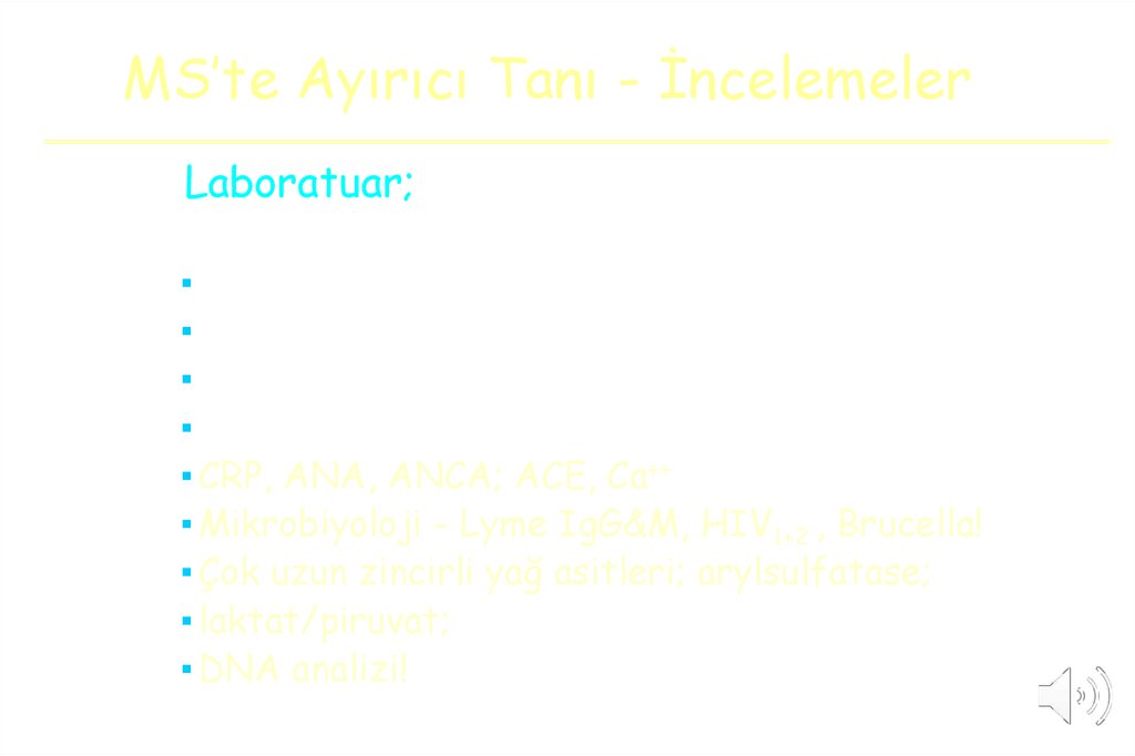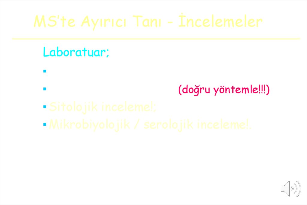 MS’te Ayırıcı Tanı - İncelemelerLaboratuar;