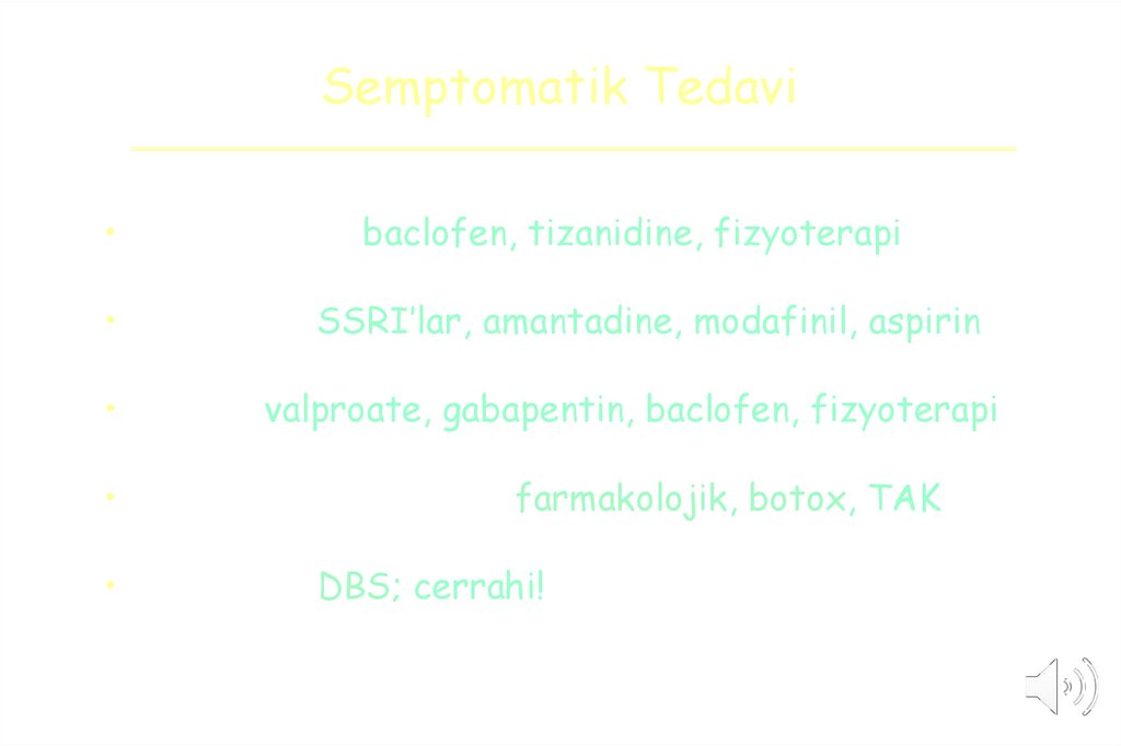 Semptomatik Tedavi• Spastisite - baclofen, tizanidine, fizyoterapi