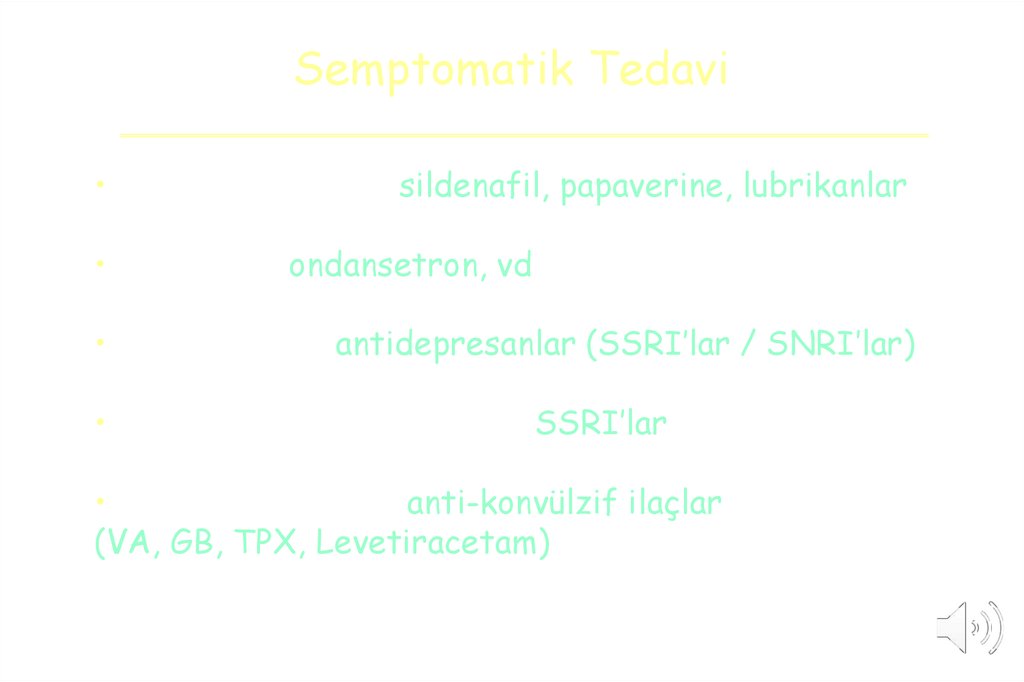 Semptomatik Tedavi• Cinsel sorunlar – sildenafil, papaverine, lubrikanlar