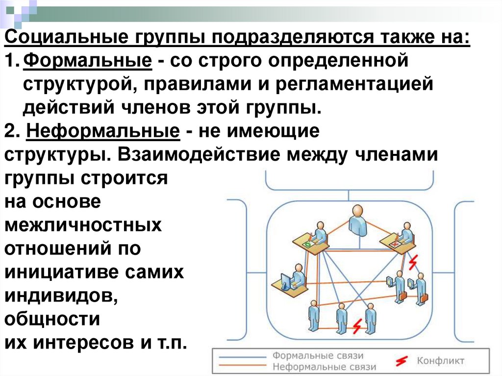 Социальные группы подразделяются также на:1. Формальные - со строго определенной