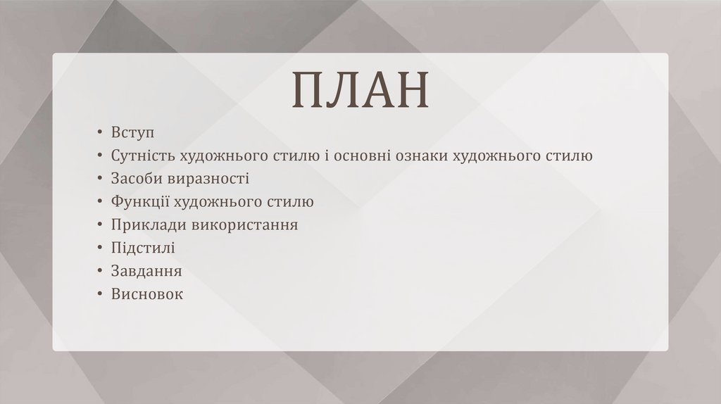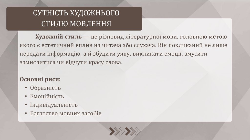 • Сутність художнього стилю і основні ознаки художнього стилю