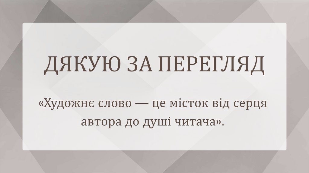 ДЯКУЮ ЗА ПЕРЕГЛЯД«Художнє слово — це місток від серця