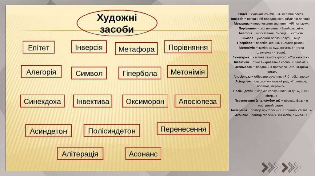 епітет, порівняння тощо).