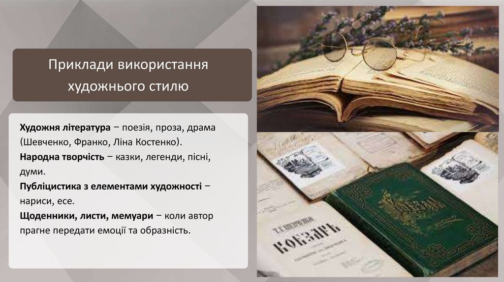 Приклади використанняхудожнього стилю