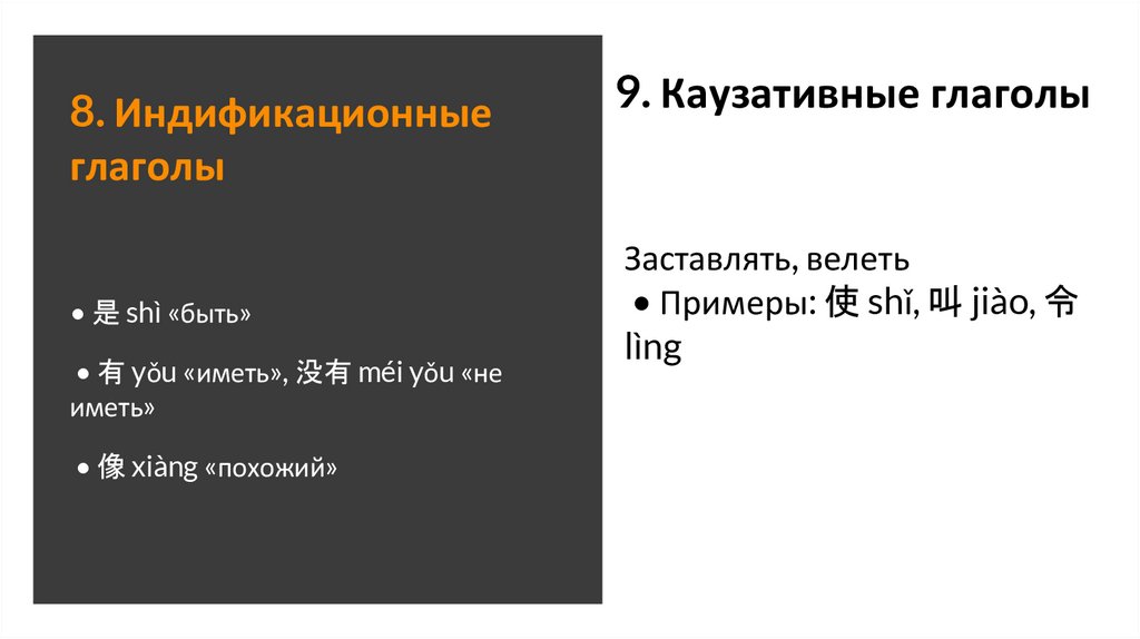 • Примеры: 使 shǐ, 叫 jiào, 令