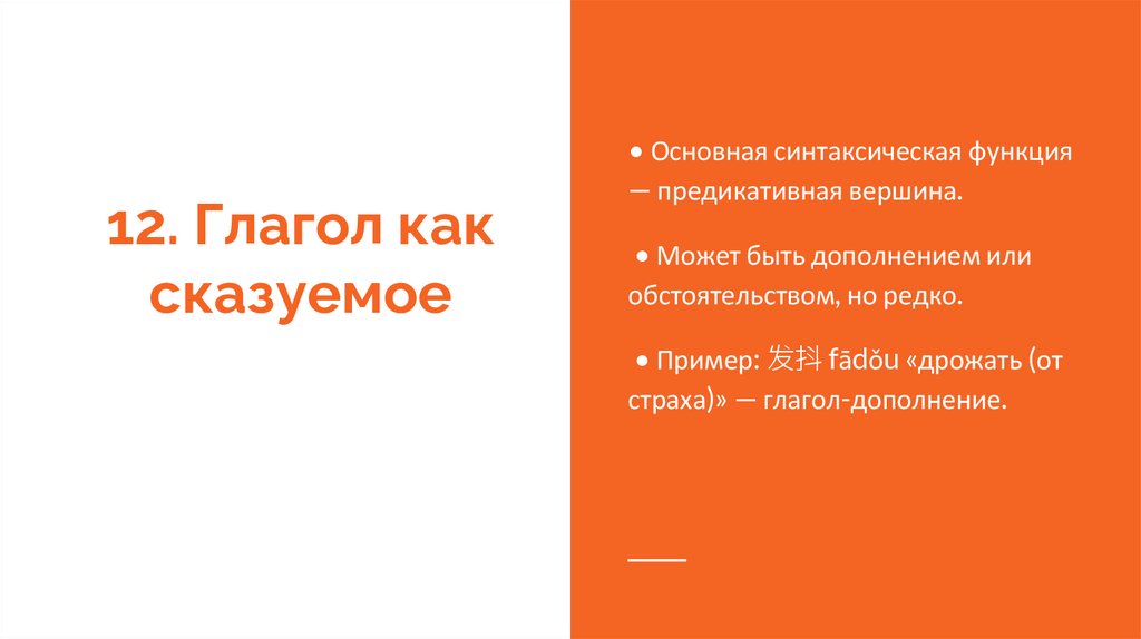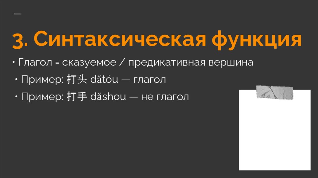 3. Синтаксическая функция• Глагол = сказуемое / предикативная вершина