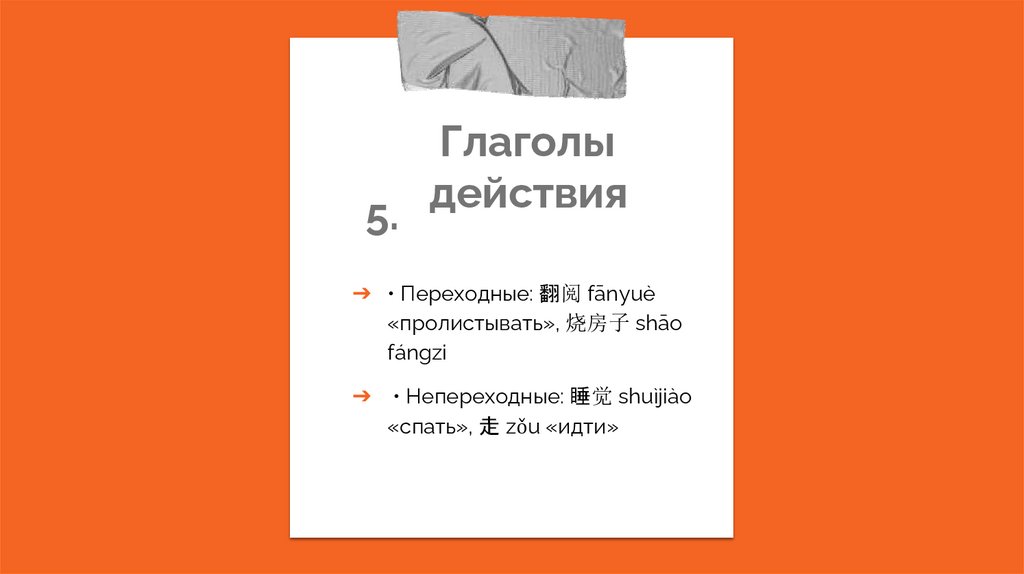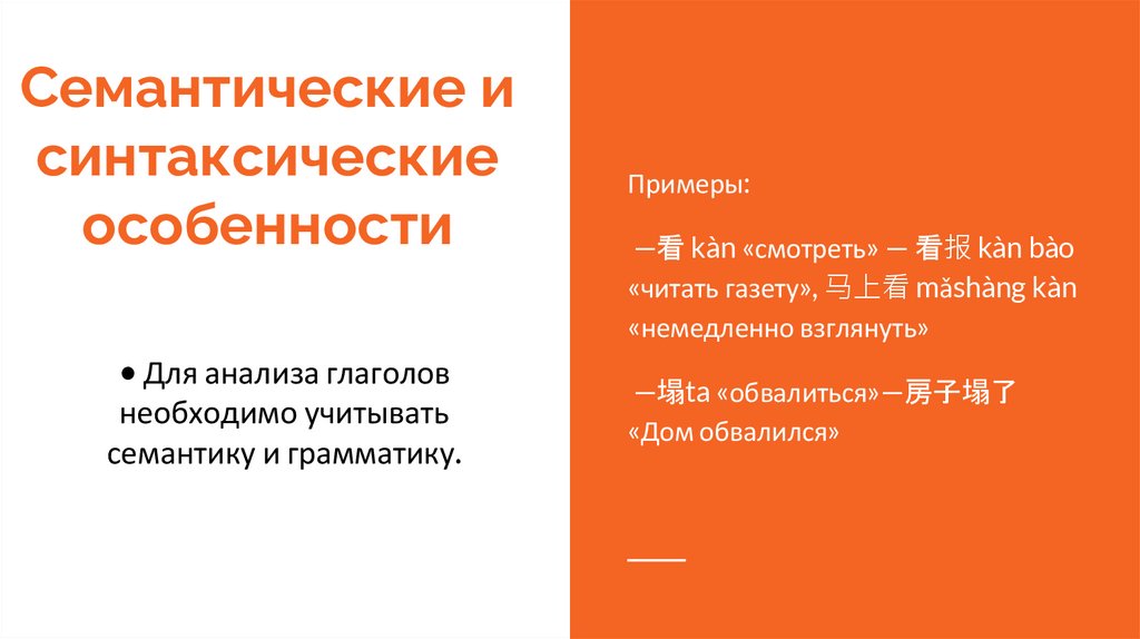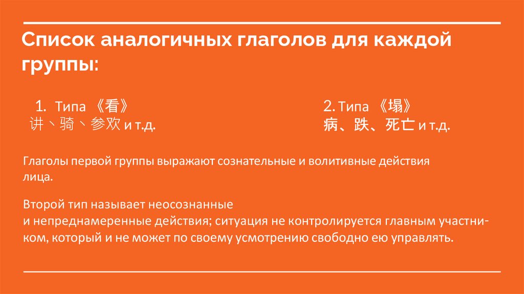 • Когнитивные: 猜 cāi «гадать», 感到 gǎndào «ощущать»