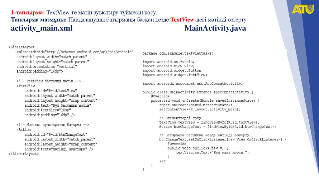 Тапсырма мазмұны: Батырма басылғанда TextView-дегі