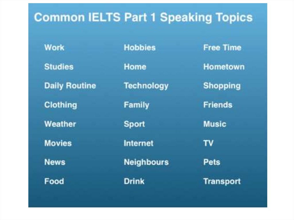 • Speaking test is around 13-15 minutes long.• Part 1