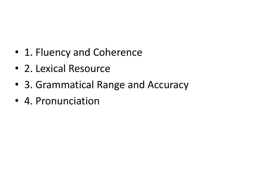 • 1. Fluency and Coherence• 2. Lexical Resource