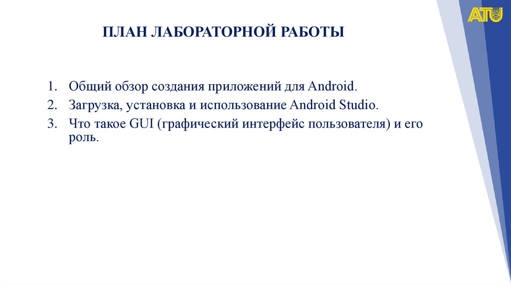 ПЛАН ЛАБОРАТОРНОЙ РАБОТЫ1. Общий обзор создания приложений для Android.