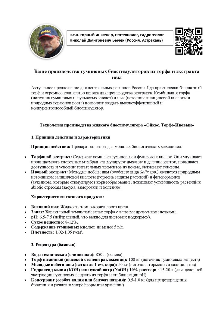 Технология производства жидкого биостимулятора «Ойкос. Торфо-Ивовый»