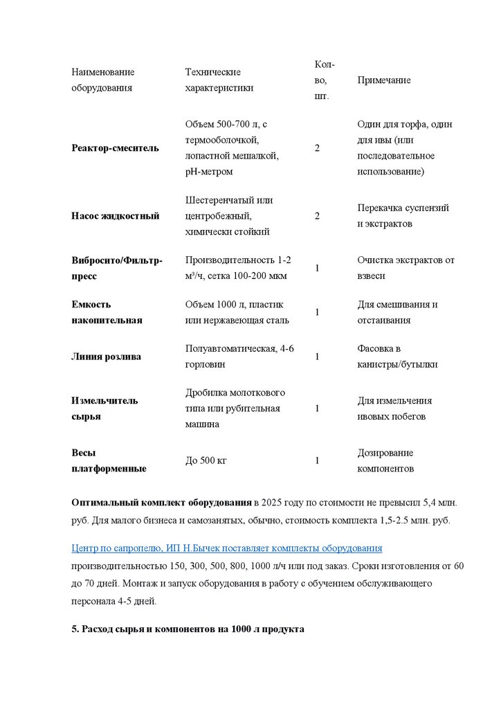 Малое оборудование по предложению поставляется ИП Н. Бычек вместе с технологическим