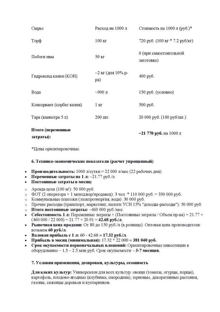 производство востребованного, экологичного и эффективного продукта с низким порогом